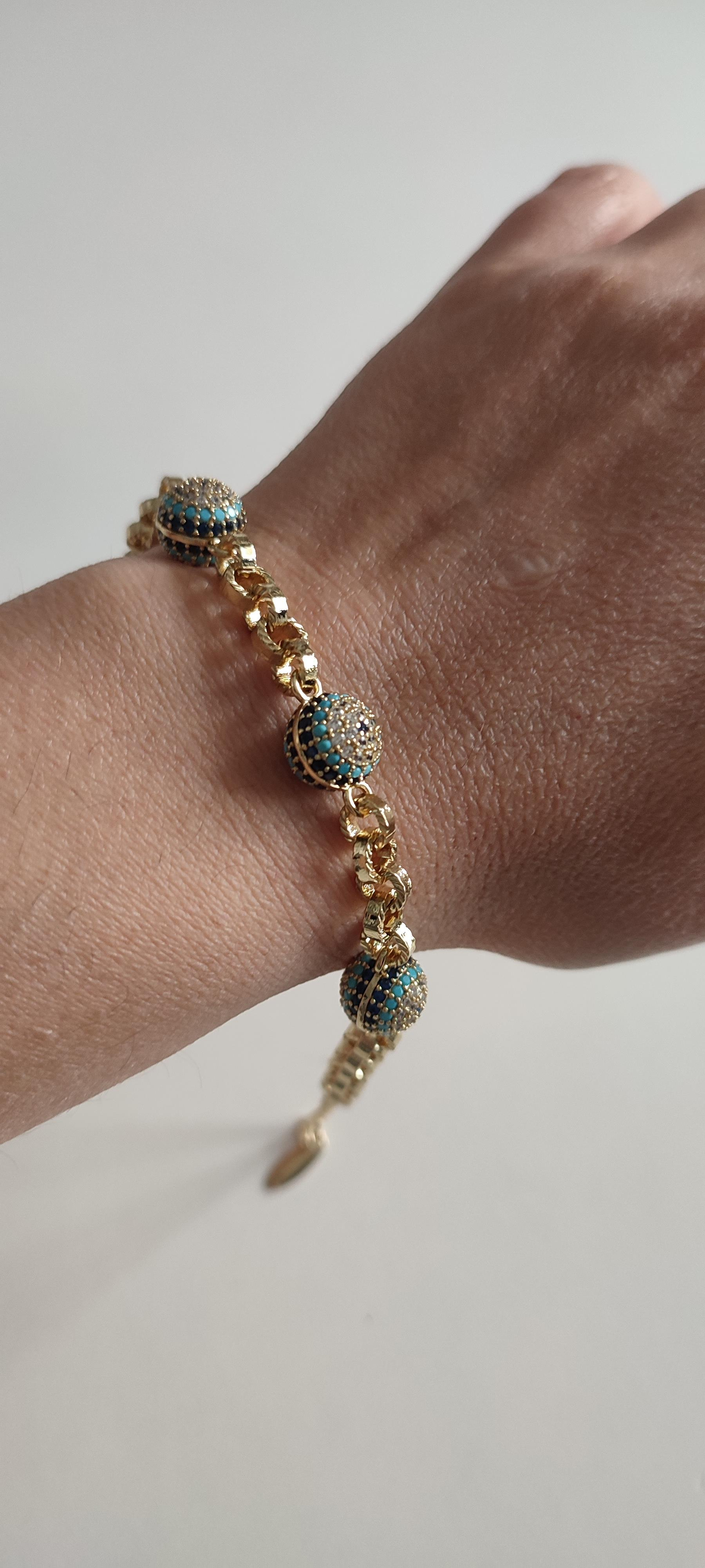 XP 14 K RENGİNDE ÜÇLÜ NAZARLI BİLEKLİK (She876)