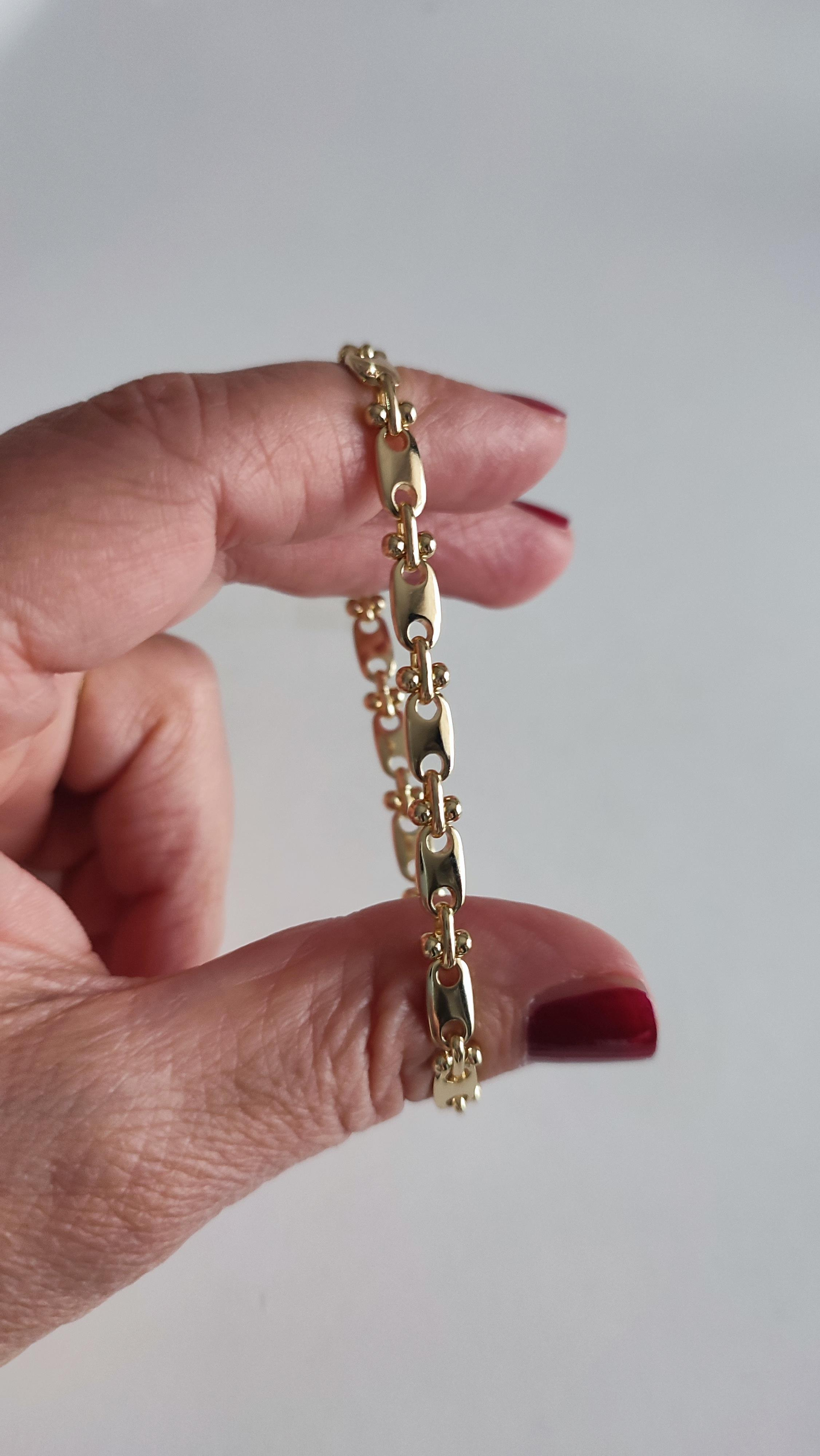 Parlak altın rengi ve modern halkalı tasarımıyla Xuping Gold Link Bileklik, her kombinle uyum sağlıyor.