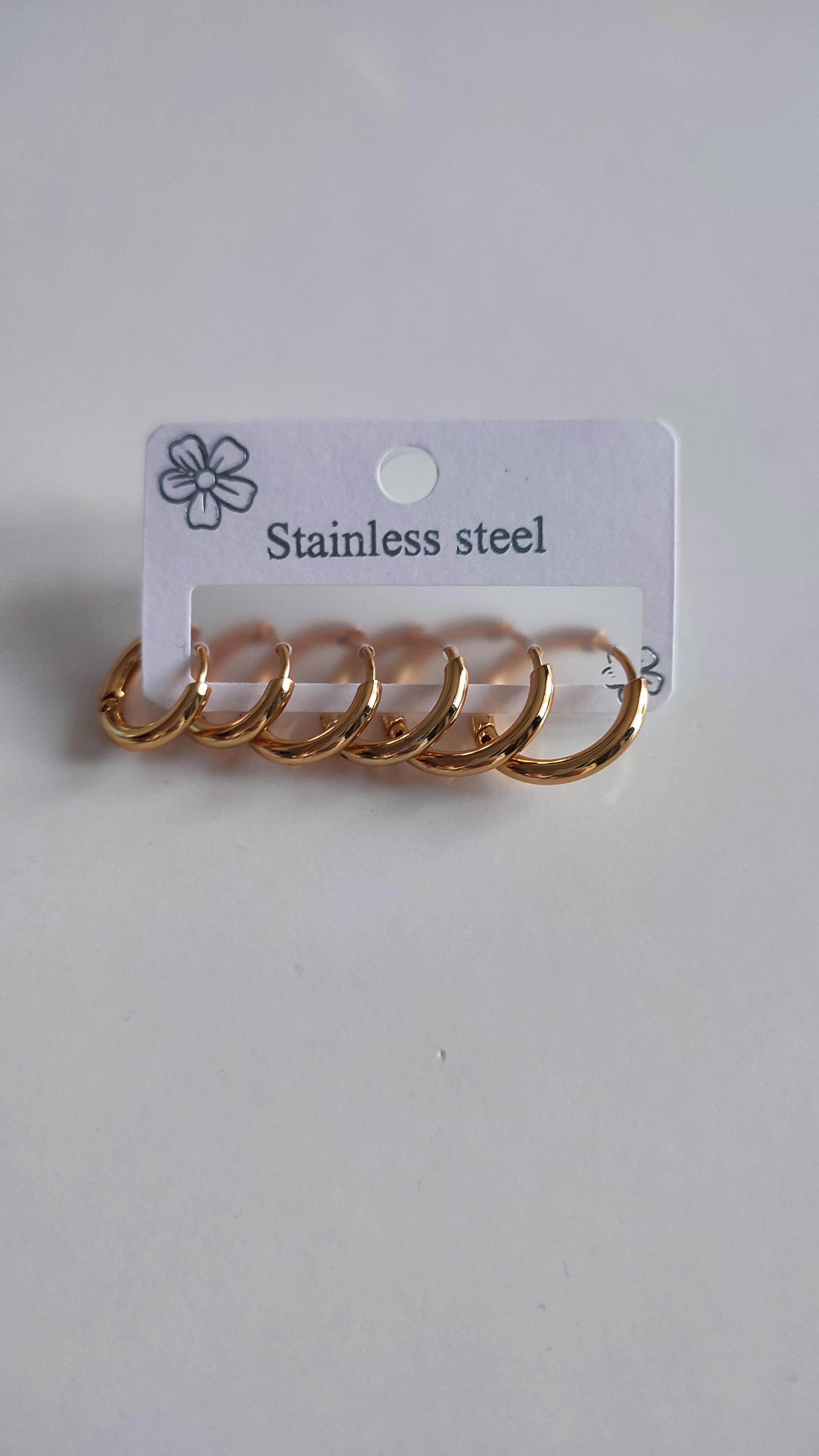 ÇELİK GOLD ALTILI HALKA KÜPE SETİ (She64)