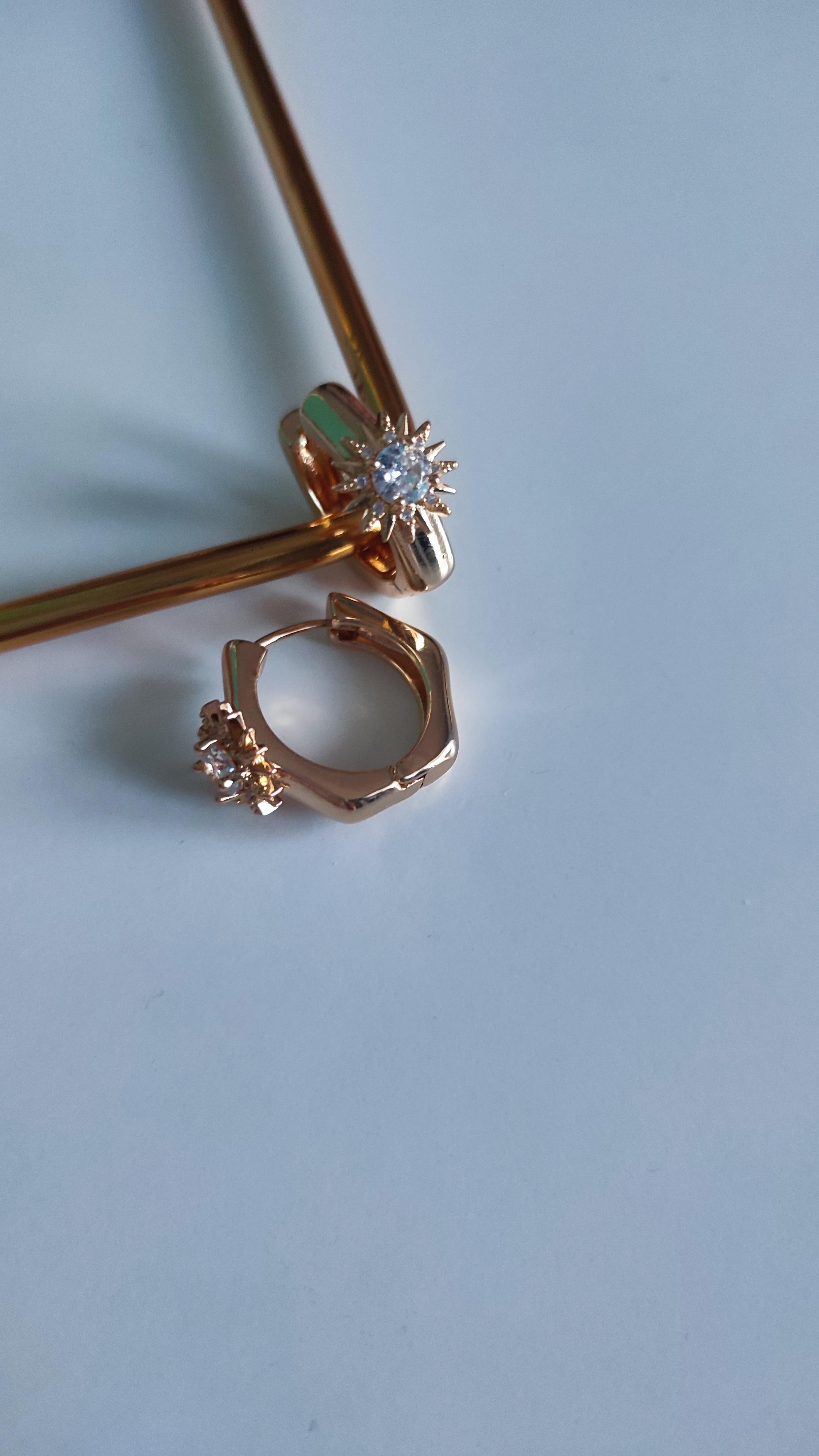 ÇELİK GOLD ÜZERİ TAŞLI HALKA KÜPE (She876)
