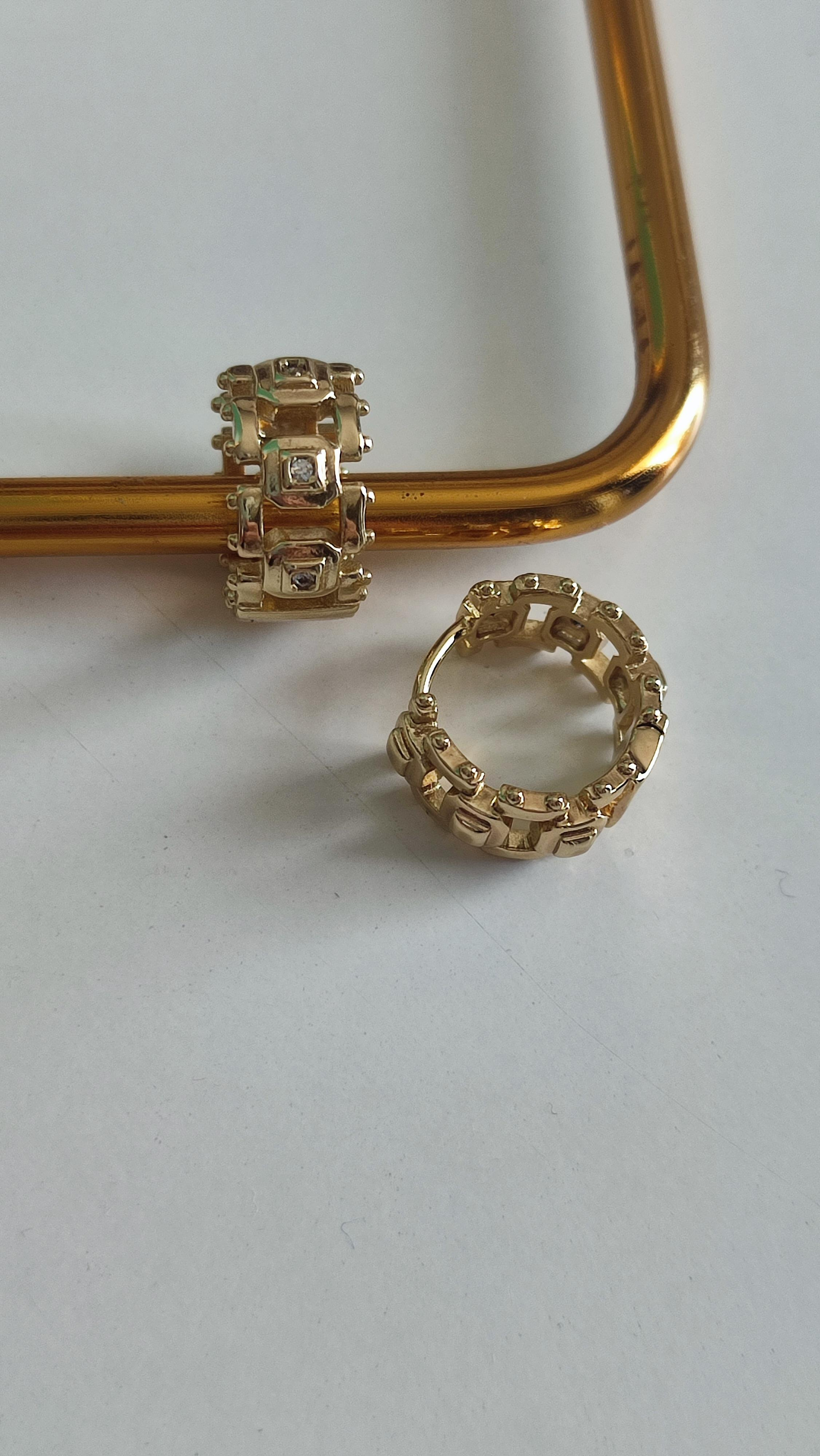 XP 14 K RENGİNDE BİRBİRİNE GEÇMELİ KARELİ HALKA KÜPE